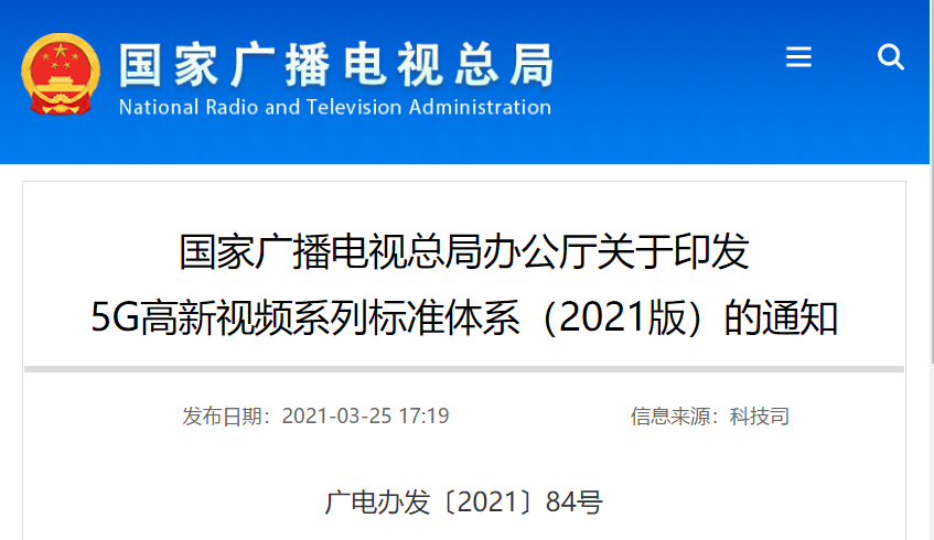 近日,国家广电总局发布通知,印发5G高新视频系列标准体系(2021版),包括互动视频、沉浸式视频、VR视频和云游戏四项标准体系文件,以标准引领和规范5G高新视频领域发展。 5G高新视频-互动视频标准体系、5G高新视频-沉浸式视频标准体系、5G高新视频-VR视频标准体系、5G高新视频-云游戏标准体系贯彻落实5G发展战略,针对5G环境 下“更高技术格式、更新应用场景、更美视听体验”的高新视频新业态发展需求,从互动视频技术、沉浸式视频技术、VR视频技术、云游戏技术和应用发展的角度出发,覆盖互动视频制作传输